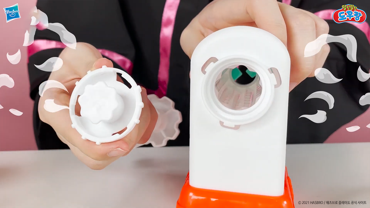 그 다음에는 손잡이를 돌려서 도우가 들어갈 자리를 만들어 주세요.