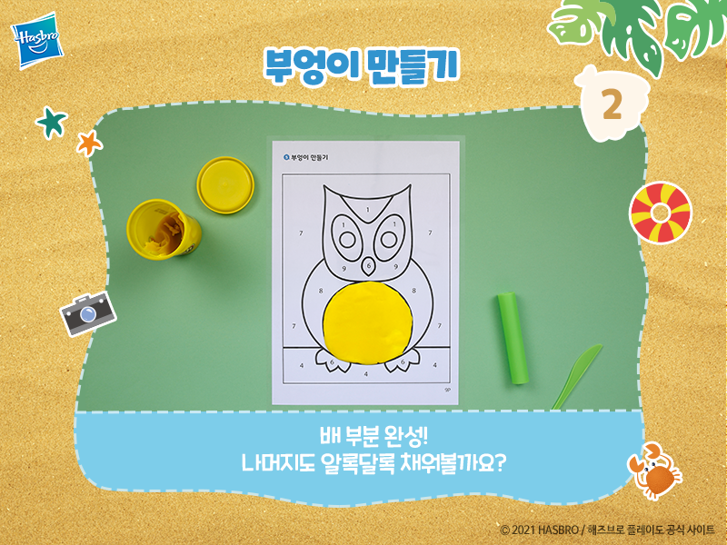 부엉이의 배 부분이 노란색을 채워졌어요!